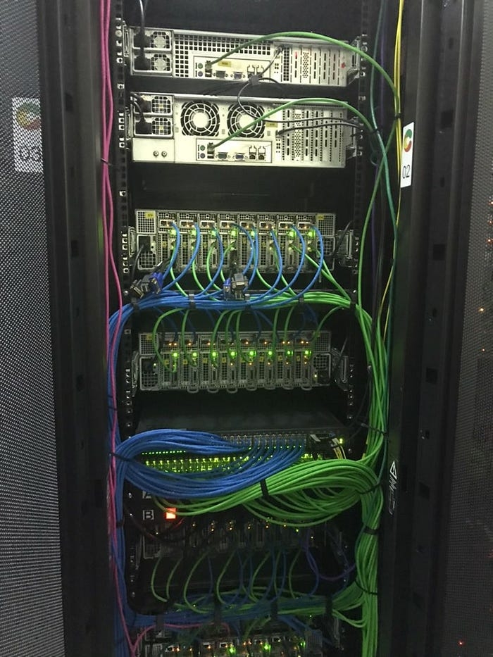 Once in the housing facilities we could placed them in a almost un-used rack. It was nice to see the extremely care showed by the personal. You can lay assured that your machines are in good hands when you see a back side of a rack looking like this one: